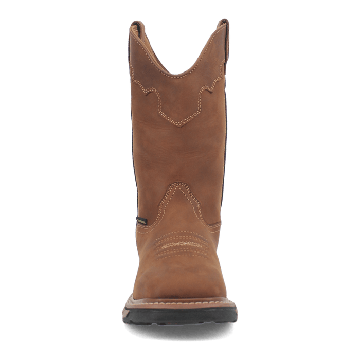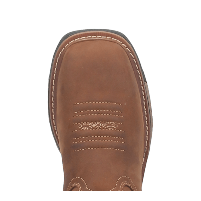 The Blayde is your go-to western work boot for comfort and durability. Crafted with saddle tan leather. Keep your foot dry with the waterproof membrane bootie. Featuring the Dan Post DPC Comfort System that with a Removable Orthotic that’s breathable, anti-fungal, anti-microbial and machine washable. Also features a broad square toe and an Ultra Light heat, oil and slip-resistant outsole.