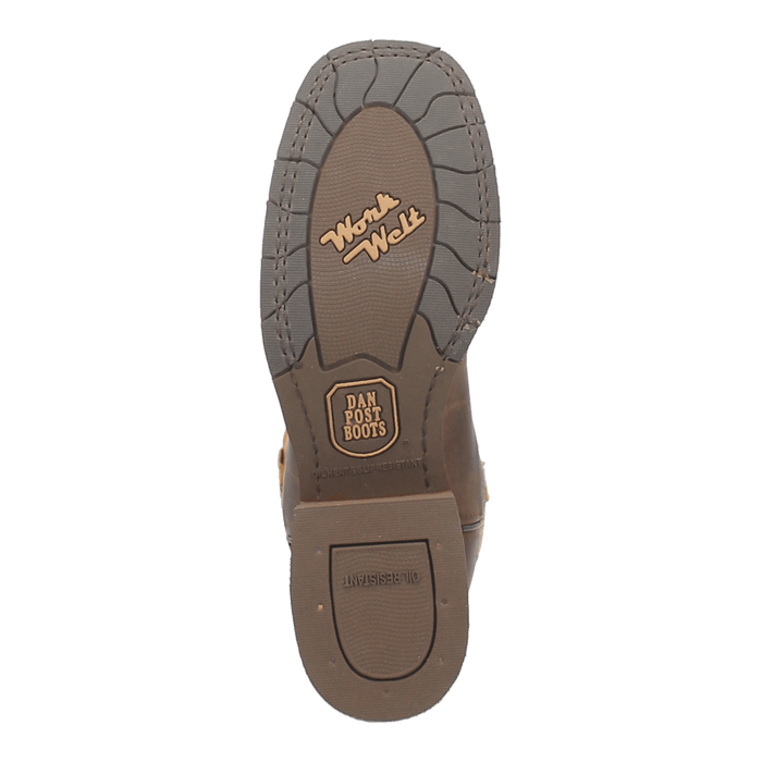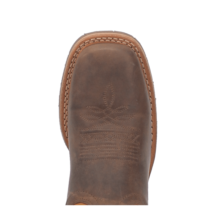 The Ferrier boot keeps you looking sharp while you work. This two-toned all leather boot is designed with traditional western stitching and a broad square toe. Features a long wearing Work Welt rubber outsole.