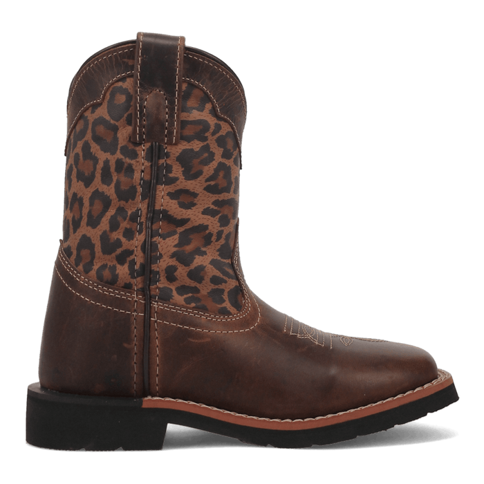 Leopard print boots are all the rage. Genuine leather foot with leopard leather upper and contrasting collar makes the Makucha a winner. Broad square toe and non-marking rubber outsole.