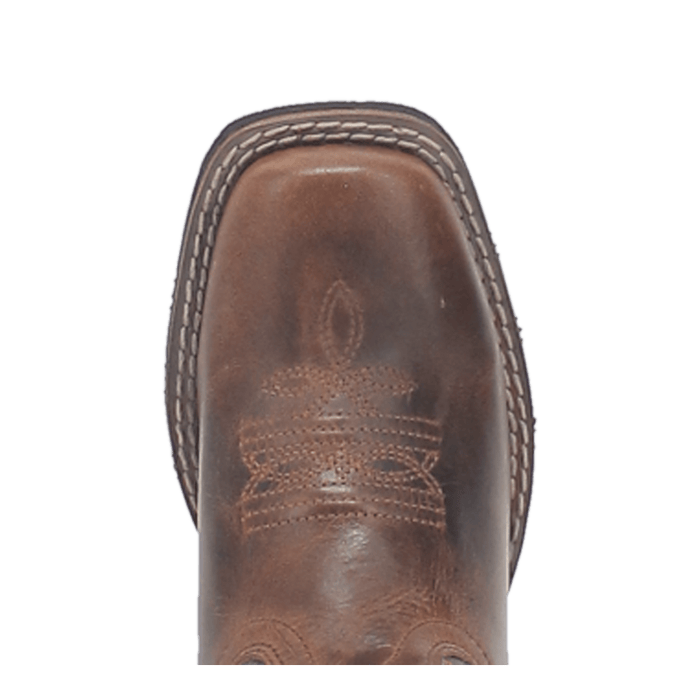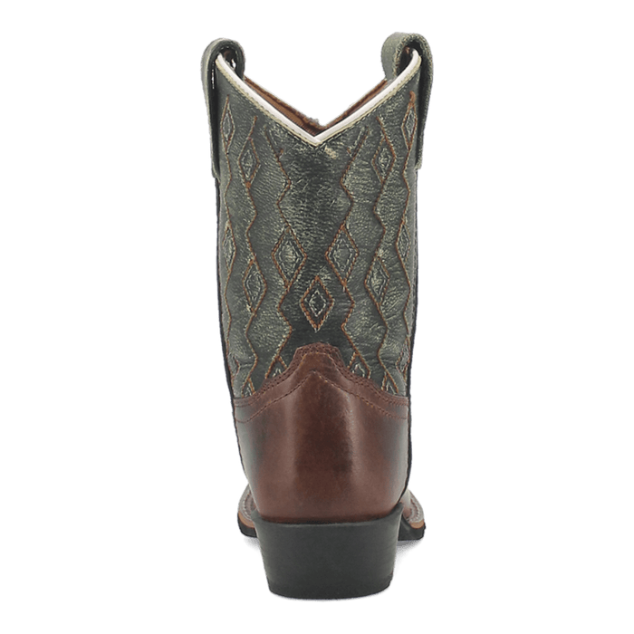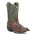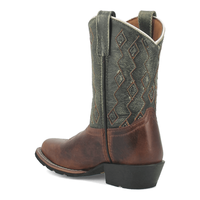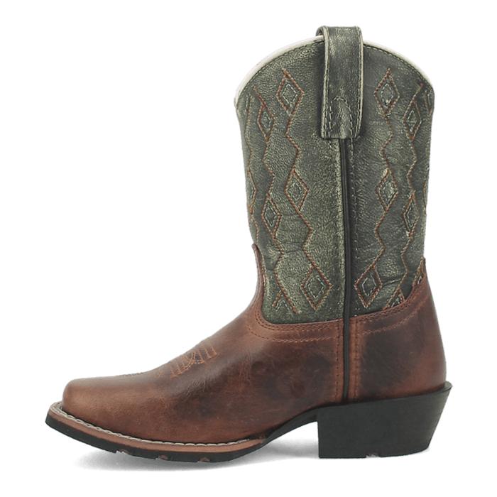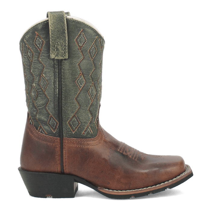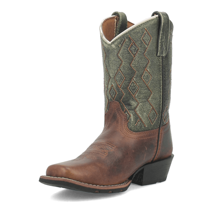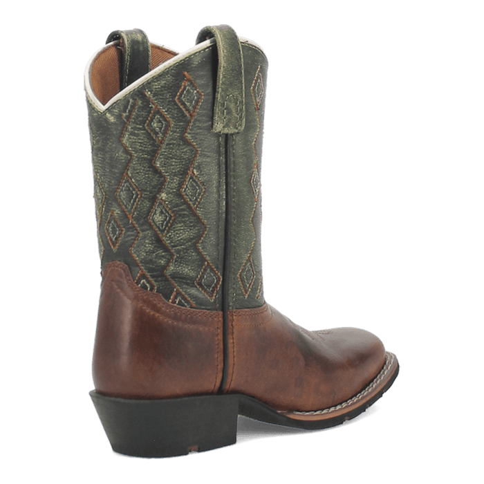 Your little man will love this stylish Teddy boot. Constructed with genuine leather. The green shaft is distressed and stitched with a unique diamond pattern. It's paired with a rust leather foot, and has a Comfort Cushion insole, broad square toe, and rubber outsole.