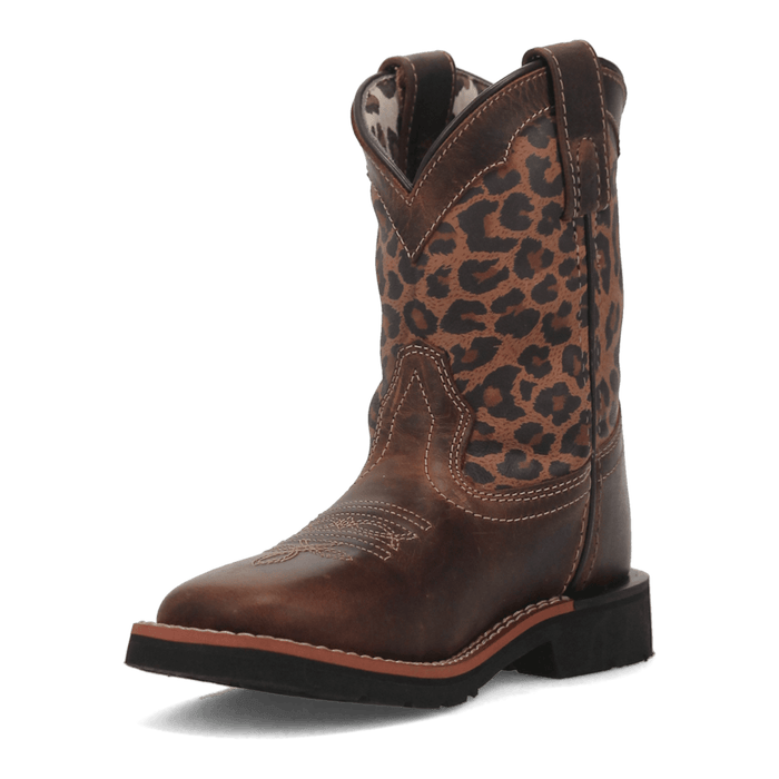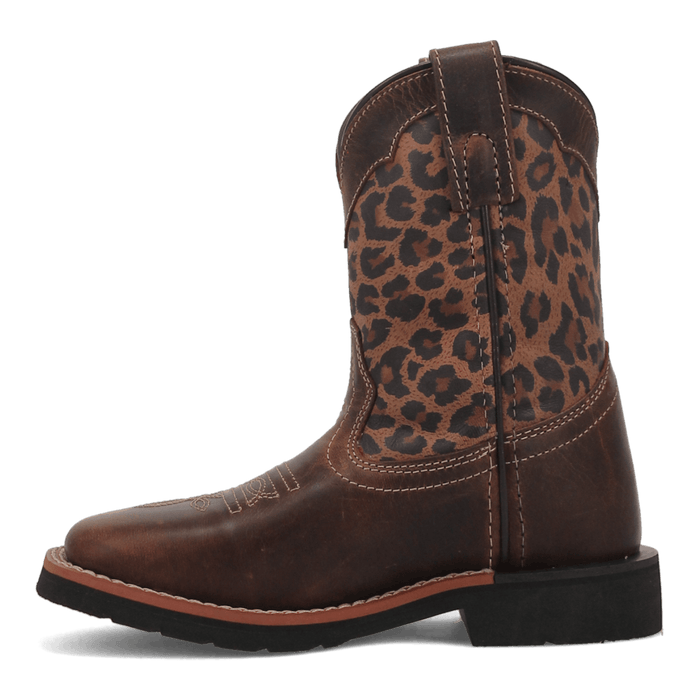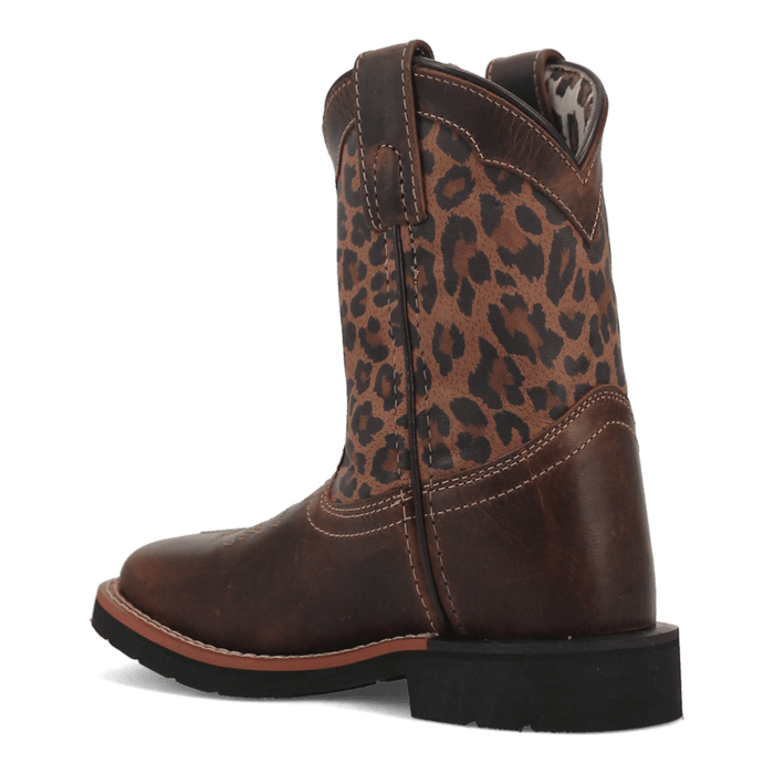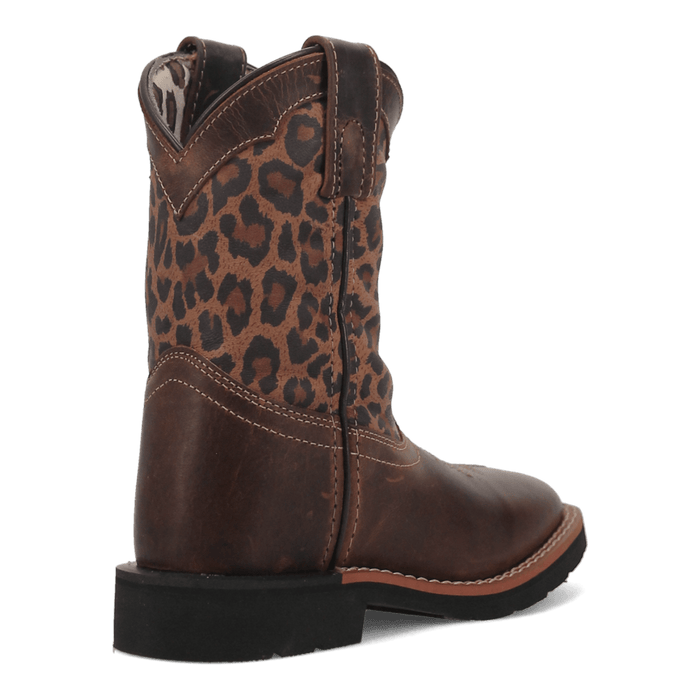 Leopard print boots are all the rage. Genuine leather foot with leopard leather upper and contrasting collar makes the Makucha a winner. Broad square toe and non-marking rubber outsole.