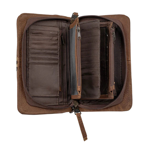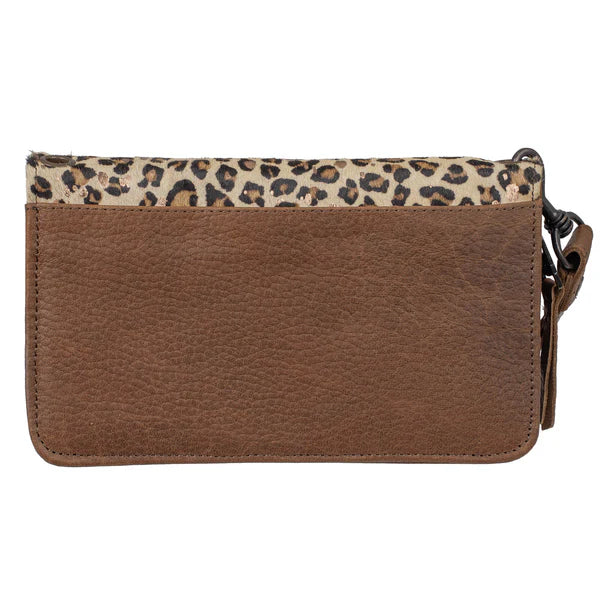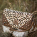 - Genuine hair on hide with leopard print and copper foil accents exterior