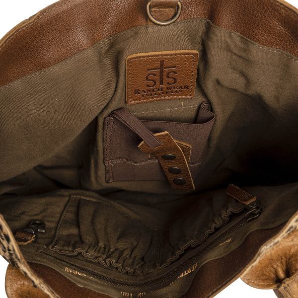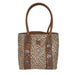 - Genuine hair on hide with leopard print and copper foil accents exterior