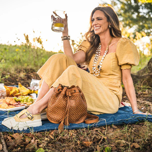 Discover the charm and sophistication of the Sweetgrass Bucket Bag, meticulously crafted from buttery soft, full grain leather. Each piece is hand woven, milled, and tumbled to achieve a luxurious finish that highlights its elegant design and functional durability.