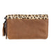 - Genuine hair on hide with leopard print and copper foil accents exterior