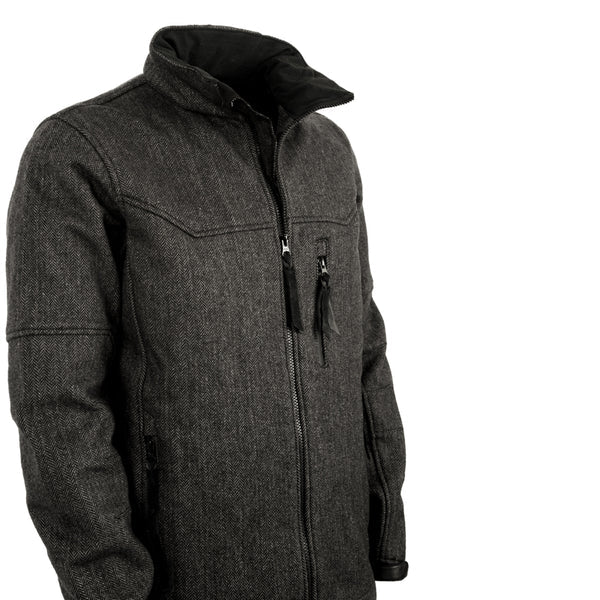 Wool blend shell made from 50% acrylic, 40% wool, and 10% polyester